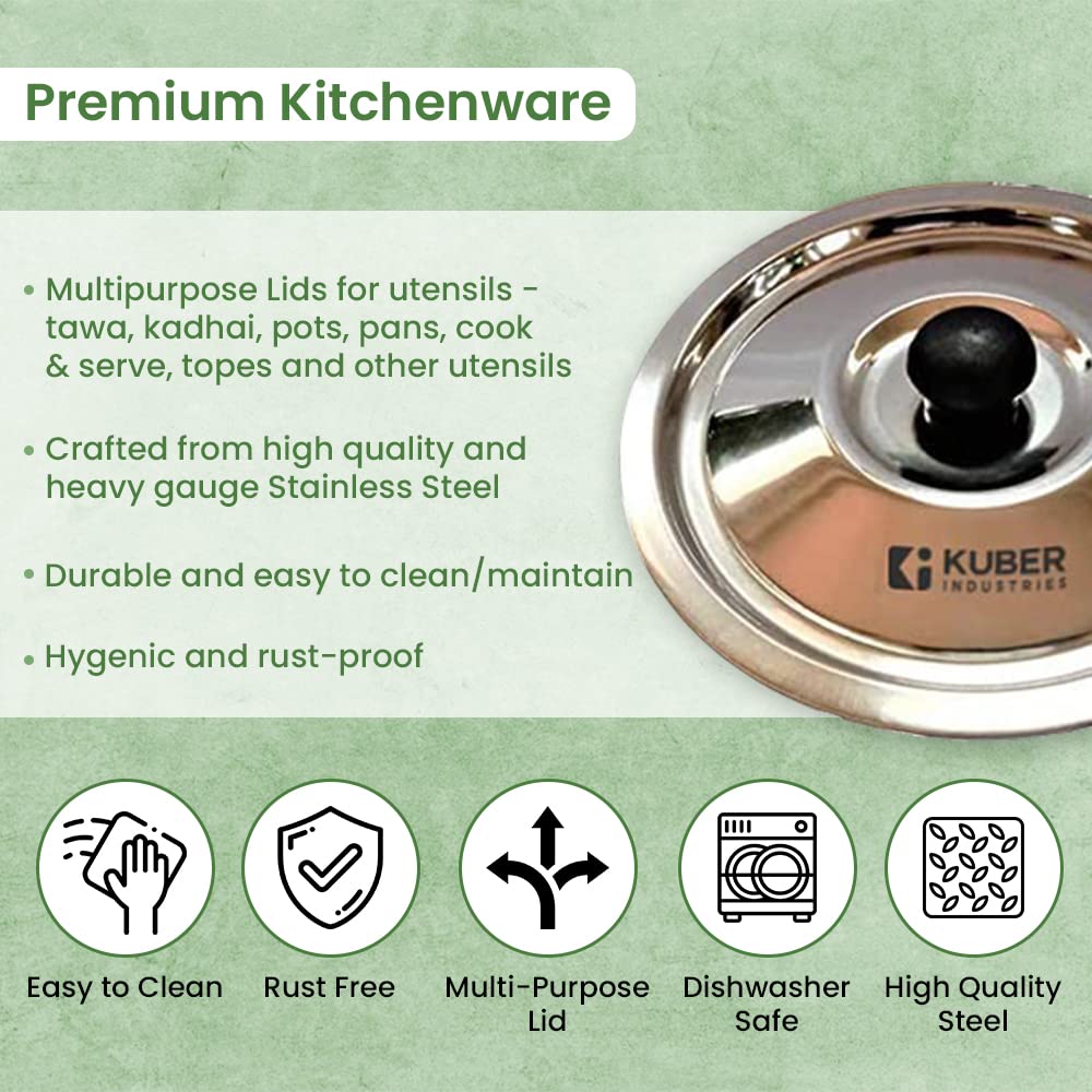 This cooking lid set for home is made of food grade stainless steel, ensuring safe cooking. They come with sturdy knobs, making it easy to hold, and are compatible with all kinds of pots and pans. Their blunt edge design and shiny finish gives an elegant touch to your stainless steel kitchen cookware. Available in a set of 5, these stainless steel kitchen lids are highly durable and easy to clean, making it the perfect cooking set for your kitchen.Detailed Specifications: