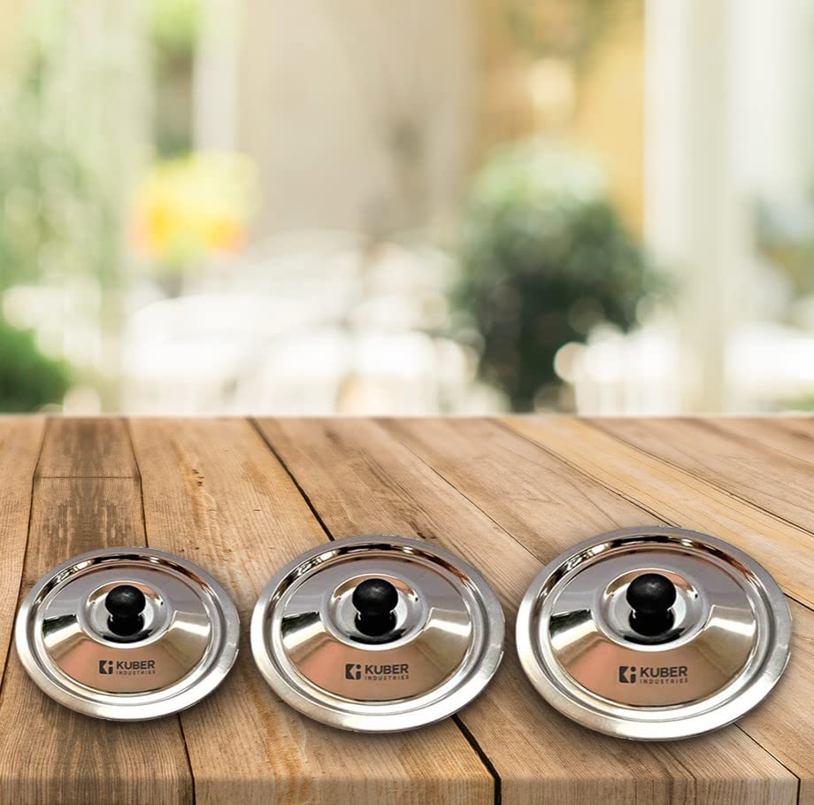 This cooking lid set for home is made of food grade stainless steel, ensuring safe cooking. They come with sturdy knobs, making it easy to hold, and are compatible with all kinds of pots and pans. Their blunt edge design and shiny finish gives an elegant touch to your stainless steel kitchen cookware. Available in a set of 5, these stainless steel kitchen lids are highly durable and easy to clean, making it the perfect cooking set for your kitchen.Detailed Specifications: