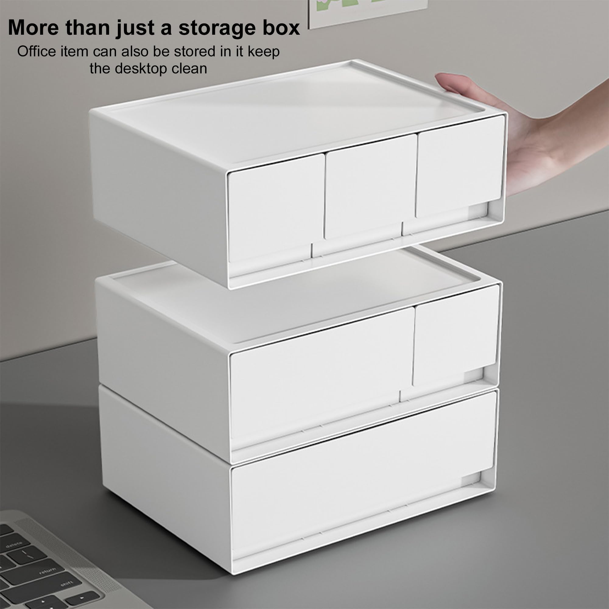 Homestic is presenting you a solution to organize your home and office desk space. 3 drawers stackable storage box. Made from durable HIPS+PP material, these drawers are built to last. Each drawer offers plenty of storage for a variety of items, from office supplies and makeup to electronic gadgets. The sleek design fits easily on desks, shelves, or countertops, and the stackable design allows you to customize your storage solution to maximize space. Declutter your home, office, or school with this convenient and stylish storage organizer!Detailed Specifications: